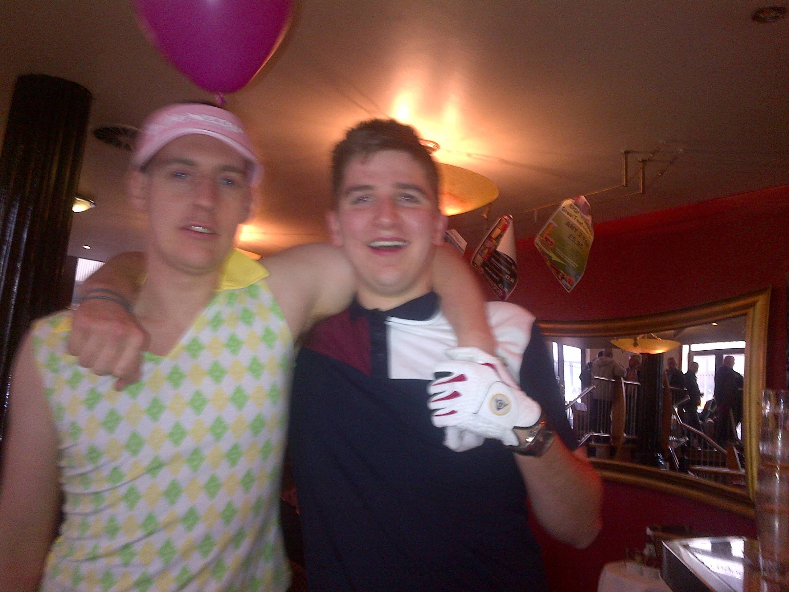 Dressed up looking like the nuttiest golfer around, we walked into the pub to be met by the rest of the lads who where all dressed alike. Having my first pint at 9AM and a bacon bun, I knew it was going to be a heavy day.