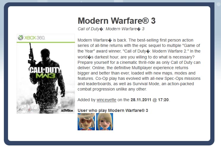 Another really simple, but effective feature i quickly added was the chance to see which other users are playing the same game as you. When you click on a games itself, for instance Battlefield 3 you can see at the below what i am talking about.